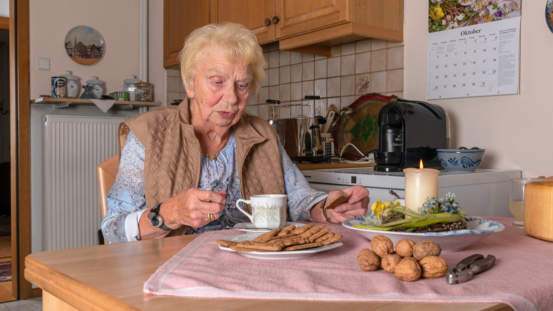 In dieser dokumentarischen Fotoarbeit dokumentiere ich das Leben meiner Oma. Die Fotos zeigen ihren Alltag und die Umgebung, in der sie lebt. Durch eine nüchterne Betrachtung ihrer Routinen und der kleinen Dinge, die ihren Alltag prägen, möchte ich die Erfahrungen festhalten, die sie geformt haben. Diese Arbeit bietet einen schlichten Einblick in das Leben einer älteren Generation und die Spuren, die Zeit hinterlässt.
