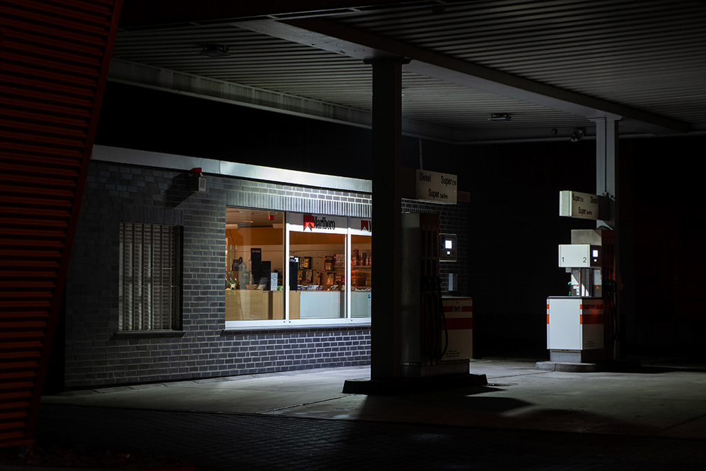 Die Fotoserie „Noch geöffnet?“ beschäftigt sich mit Orten, die nachts weiterhin in Licht gehüllt sind – Tankstellen, Kiosks, Kirchen und andere Einrichtungen, die den Eindruck erwecken, als seien sie noch in Betrieb. Inmitten der nächtlichen Dunkelheit wirken sie einladend, beinahe lebendig, und doch ist oft niemand mehr da. Diese scheinbar unbewohnten Orte strahlen eine besondere Atmosphäre aus, die zwischen Verfügbarkeit und Verlassenheit schwebt.